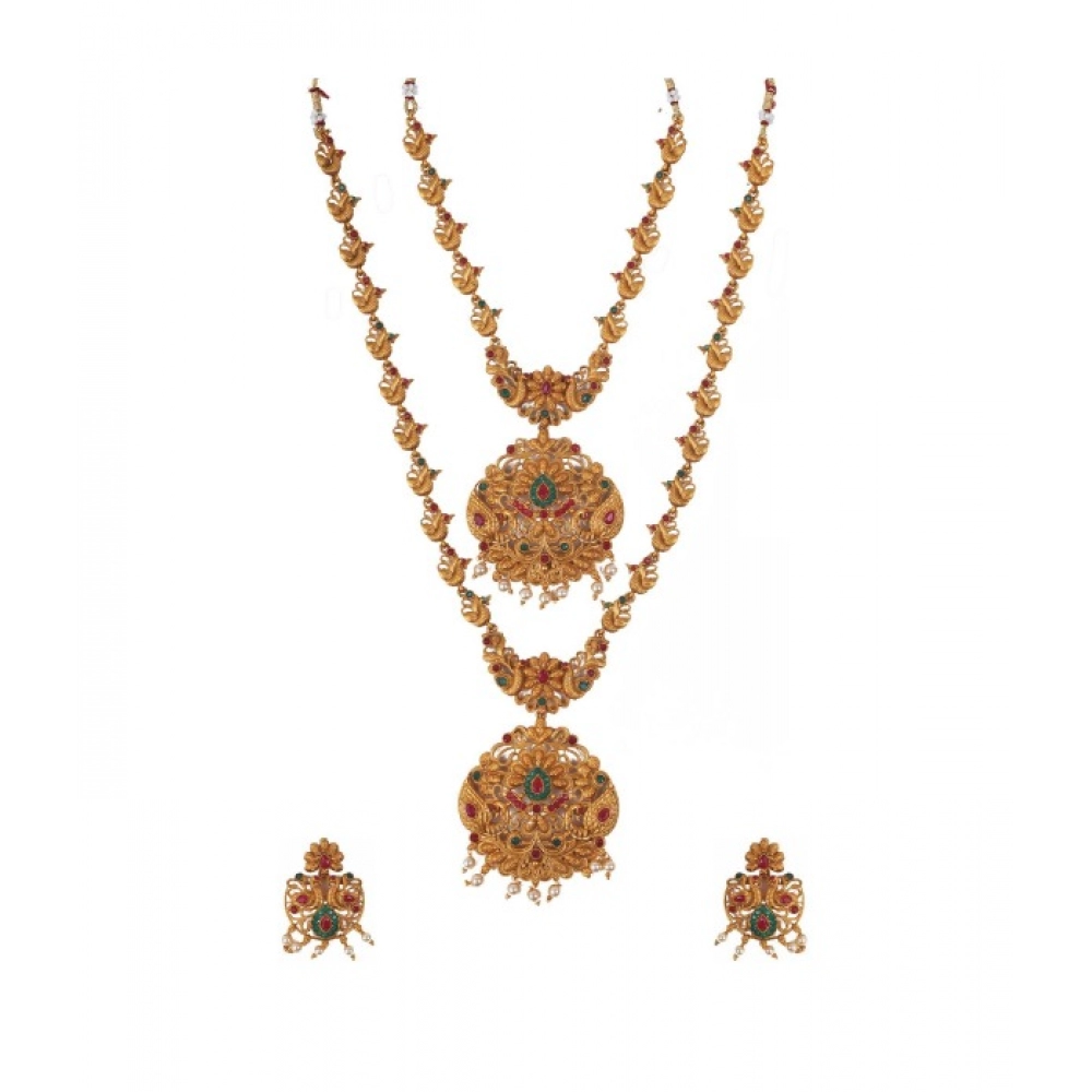 BS Women’s Elegent And Modern Double Line Temple Jewellery Set (Red And Green, Free Size)