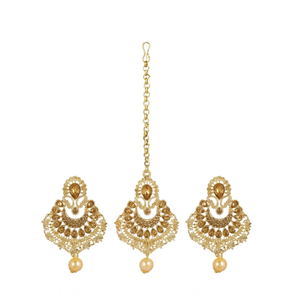 BS Women’s Rose Gold Plated Alloy Kundan Earrings & Mangtikka (Gold)
